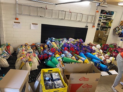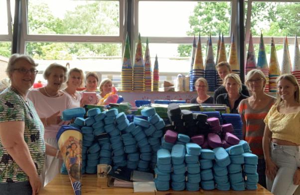 Rund 25 Helfer und Helferinnen packten am 26.8.24 insgesamt 180 Vorschultüten, 270 Schultüten und Notfallkisten für 290 Kinder. Insgesamt wurden 150 Ranzen verteilt, die von Viertklässlern aus 7 Grundschulen eingesammelt wurden. Wir möchten uns ganz herzlich für die tatkräfige Unterstützung bedanken!