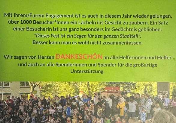 Abschließend möchten wir nochmals allen, die uns im letzten Jahr gleich welcher Form geholfen und unterstützt haben, ein großes Dankeschön aussprechen. Wir hoffen sehr, dass wir auch im Jahr 2025 auf die Hilfe und Unterstützung so vieler Firmen, Einrichtungen und Einzelpersonen setzen können, um die vorgesehenen Projekte verwirklichen zu können.