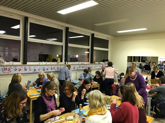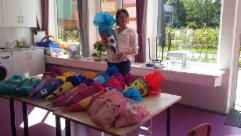 Die größeren Einrichtungen erhielten Päckchen, die Puzzle, Steckspiele, Malen nach Zahlen und Stifte, Kniffelblöcke oder auch Skatkarten für die Größeren enthielten. Loombänder um Basteln von Armbändern und Kreide wurden ebenfalls verpackt. Fast jedes Kind erhielt noch eine Mütze oder ein Tuch dazu.