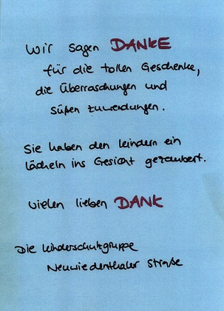 Über nette Dankesschreiben freuen wir uns immer...