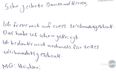 Wir freuen uns über die Mail zu den Weihnachtsgeschenken.