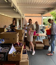 Außerdem wurden zu Beginn der Ferien von 7 Grundschulen ca. 150 Ranzen der Schüler und Schülerinnen, die in die 5. Klasse wechseln, eingesammelt, sortiert und mit den Schultüten an bedürftige Kinder verteilt.