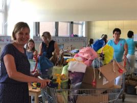 Für eine größere Einrichtung für geflüchtete Menschen wurden Kleidung, Spielzeug usw. gesammelt. So konnte auch hier vor allem vor Beginn des Herbstes und Winter mit warmen Sachen und Schuhen unbürokratisch geholfen werden. Aber auch mit Kinderwagen und Buggys wurde in der Einrichtung geholfen. Weiterhin wurde die Einrichtung mit kleinen Preisen für den Kindertag und das Sommerfest unterstützt. Aber auch vor Ort helfende Organisationen, wie z. B. die Frühen Hilfen, wurden mit Babykleidung und anderem Zubehör für Familien mit Kindern unterstützt.