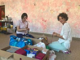Für eine Einrichtung, die viele Familien aus dem Kriegsgebiet der Ukraine aufnimmt, wurden Schulmaterialien, wie Anspitzer, Bleistifte, Radiergummi, Brotdosen und Trinkflaschen bereitgestellt.