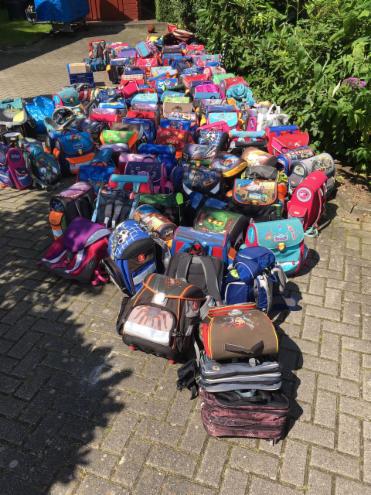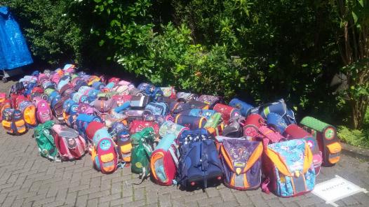 Viele, noch gut erhaltene Rantzen wurden gesammelt und an bedürftige Schulanfänger verteilt (August 2015)