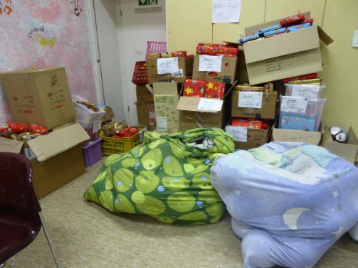 Die großen Einrichtungen haben Geschenke für die Kinder nach Altersgruppen sortiert im Wert bis ca. € 10,- erhalten (Stickerbücher, Malhefte und Stifte, Lego, Autos, Schleichtiere, Glubschi-Kuscheltiere usw. für Kleinere, Schmucktücher, Schulstifte, Fußballhandschuhe, Rätselhefte etc. für die größeren Kinder). Viele dieser Einrichtungen benutzen die Geschenke für die Weihnachtsfeier in ihren Einrichtungen, da dafür kein Geld vorhanden ist. Außerdem ist es auch leider manchmal das einzige Geschenk, welches die Kinder in der Weihnachtszeit erhalten, da sie von Ihren Eltern nichts bekommen.